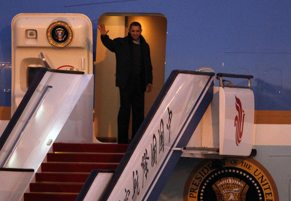 11月18日,北京首都國(guó)際機(jī)場(chǎng),美國(guó)總統(tǒng)奧巴馬結(jié)束訪華行程乘坐專機(jī)離開(kāi)北京。