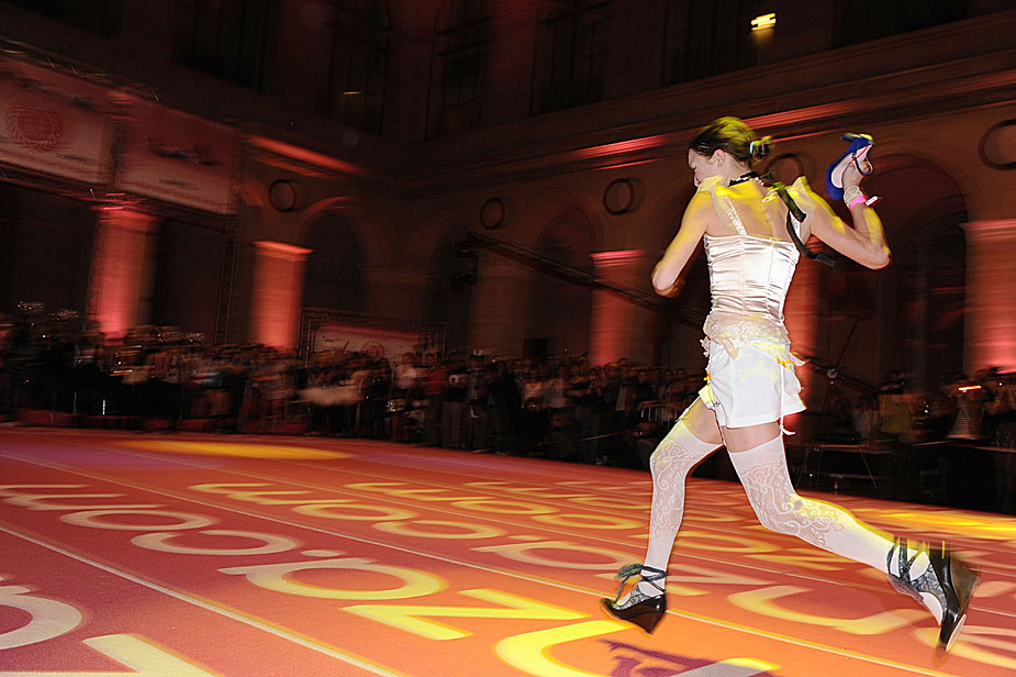 11月20日,法國巴黎舉行了有趣的室內(nèi)高跟鞋賽跑比賽,總共32支隊伍96人一爭高下。圖片來源:中國新聞網(wǎng)