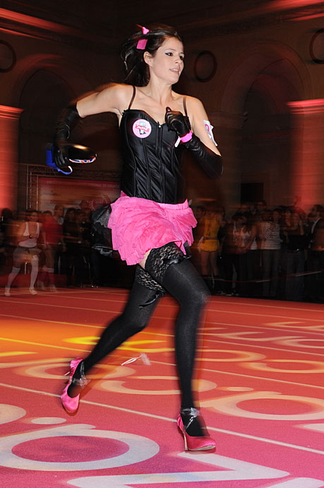 11月20日,法國巴黎舉行了有趣的室內(nèi)高跟鞋賽跑比賽,總共32支隊伍96人一爭高下。圖片來源:中國新聞網(wǎng)