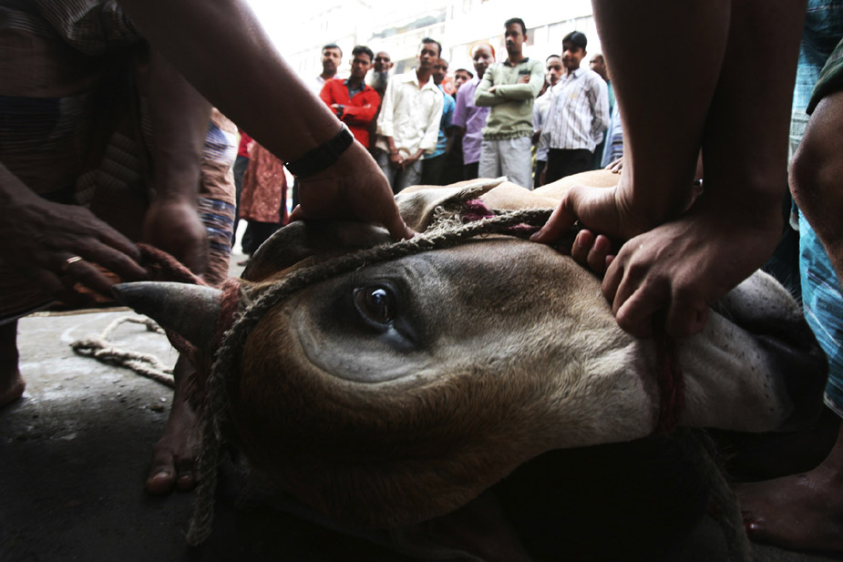 11月28日,世界各國的穆斯林迎來傳統(tǒng)節(jié)日“宰牲節(jié)”。圖為孟加拉的穆斯林在宰牲節(jié)上宰殺牲畜。