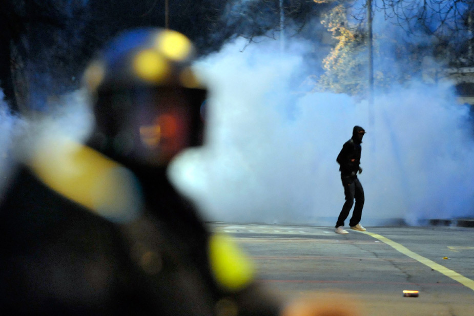 11月28日,在瑞士日內(nèi)瓦發(fā)生的抗議世界貿(mào)易組織的游行活動引發(fā)暴力沖突,部分游行者點燃汽車、砸毀商店并與防暴警察發(fā)生沖突。