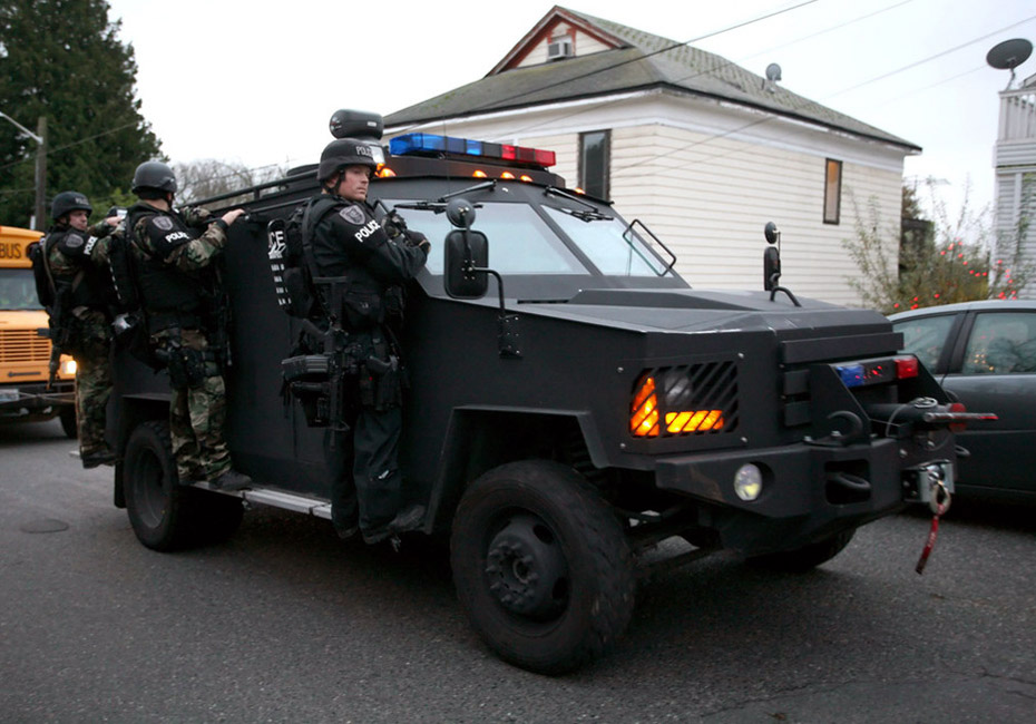 11月29日,美國4名警察在華盛頓州空軍基地附近一間咖啡館被兩名槍手槍擊,4人當場死亡。美國軍方派遣反恐特警小組展開大規(guī)模追查。圖片來源:中國新聞網