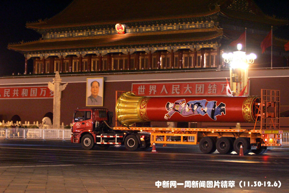 12月3日凌晨,北京天安門廣場(chǎng)上象征民族大團(tuán)結(jié)的56根民族團(tuán)結(jié)柱,經(jīng)北京住總集團(tuán)等單位的施工,已從天安門廣場(chǎng)全部拆除,進(jìn)行回廠維護(hù)。國(guó)慶六十周年慶典期間,分列在天安門廣場(chǎng)兩側(cè)的民族團(tuán)結(jié)柱受到全國(guó)各族人民的喜愛,成為節(jié)日一道亮麗的風(fēng)景。為了永久留存這56根民族團(tuán)結(jié)柱,北京市政府決定將它們拆除遷移回廠,進(jìn)行妥善維護(hù)后再擇地安放。圖片來(lái)源:中國(guó)新聞網(wǎng)