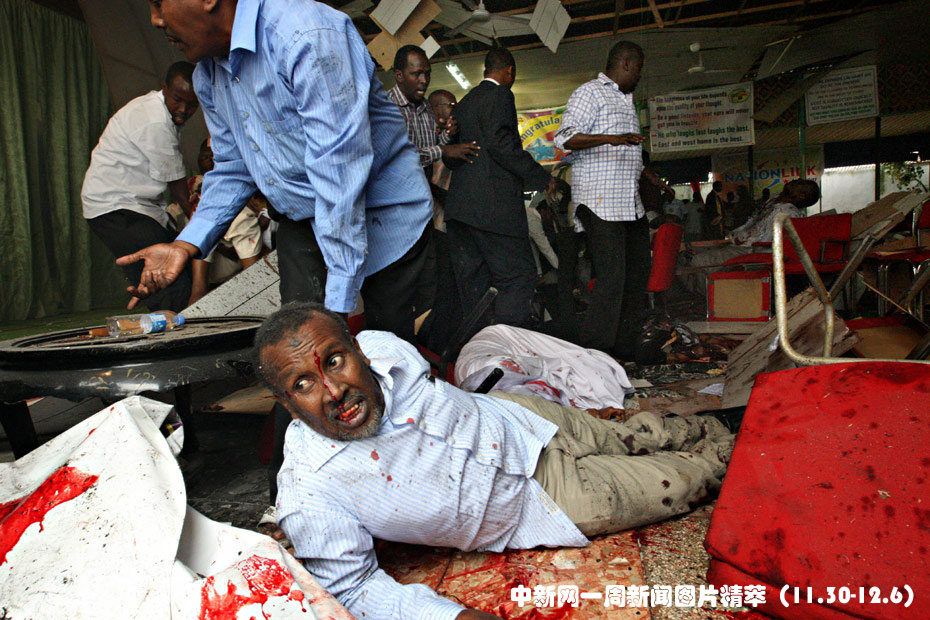 索首都摩加迪沙一家飯店3日發(fā)生的自殺炸彈襲擊事件至少已造成57人死亡,另有200多人受傷。死者中包括索馬里衛(wèi)生部長、教育部長和高等教育與文化部長。另外,青年與體育部長在爆炸中受重傷。圖片來源:中國新聞網(wǎng)
