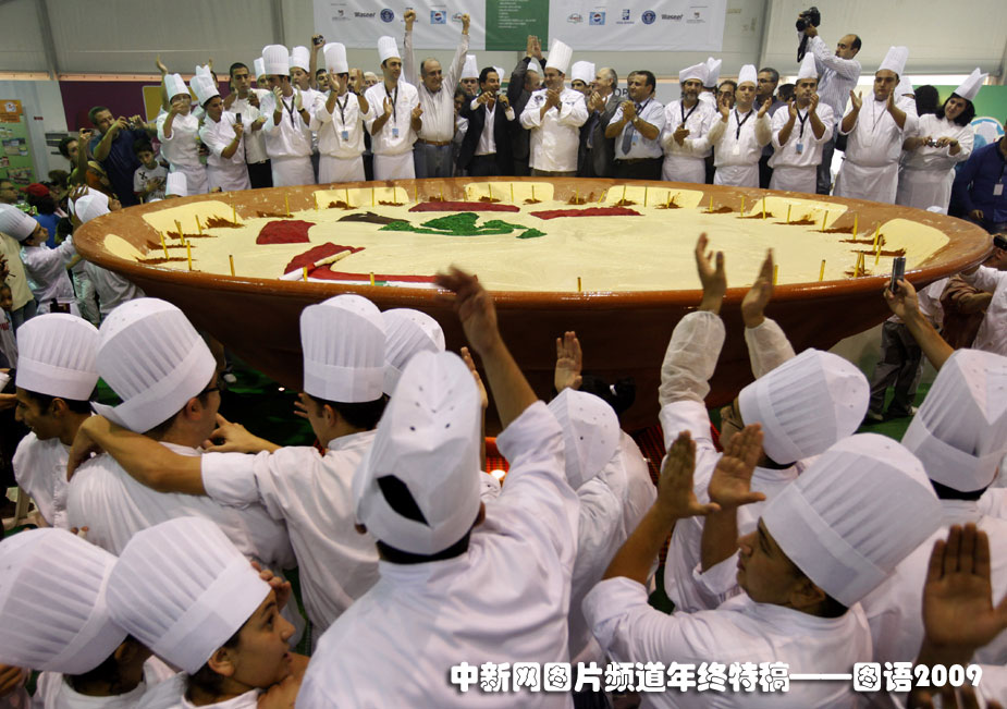 世界最重豆沙餅:10月14日,黎巴嫩廚師制作出2056公斤巨型豆沙餅,打破了世界吉尼斯紀(jì)錄。圖片來源:中國(guó)新聞網(wǎng)