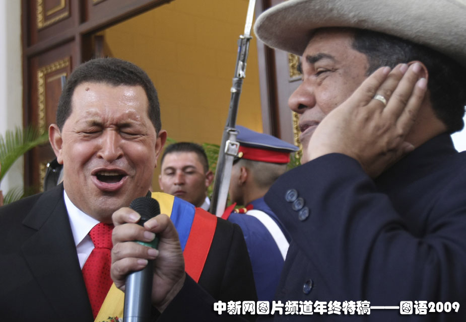 查韋斯的怒吼:2009年7月25日,委內(nèi)瑞拉總統(tǒng)查韋斯在加拉加斯舉行的一場音樂會上一放歌喉。