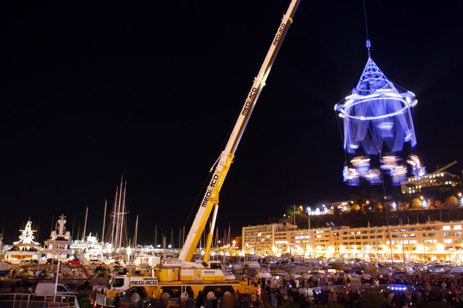 12月9日,墨西哥音樂舞蹈藝術家們進行了一場“空中快車”表演,摩納哥的藝術家們吊在起重機上演奏樂器并表演空中舞蹈。圖片來源:中國新聞網(wǎng)