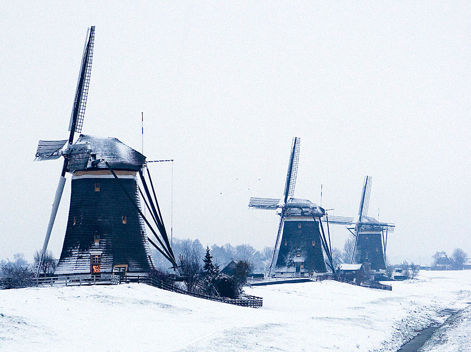 12月17日,荷蘭風車上積滿雪花。