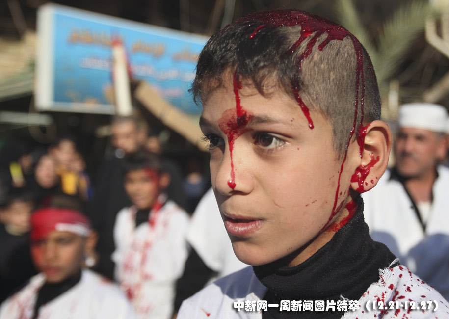 26日(周六),一位年輕的伊拉克穆斯林男孩用自己的方式慶祝阿舒拉節(jié)。