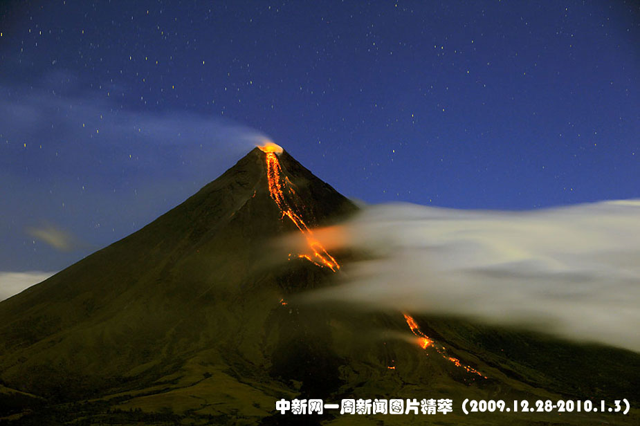 周二(29日)在菲律賓黎牙實(shí)比,巖漿從馬榮火山山口流出。由于該火山開(kāi)始爆發(fā),大約有5萬(wàn)人被撤離到臨時(shí)房屋中。圖片來(lái)源:中國(guó)新聞網(wǎng)