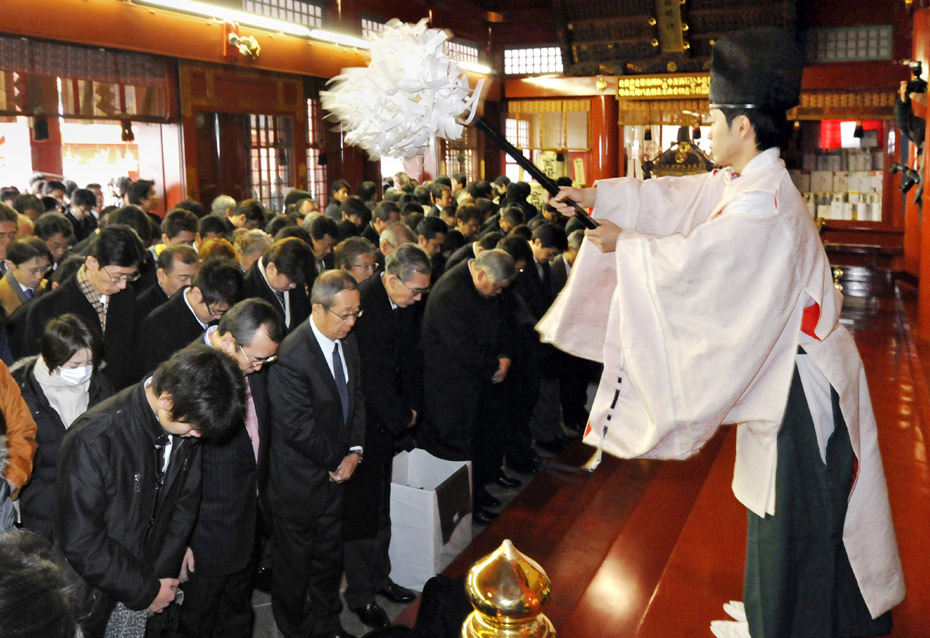 2010年1月4日,日本東京,商人聚集在神田神社里祈福,希望在新的一年里生意興隆。當(dāng)天是日本股市2010年首個(gè)交易日,市場升勢(shì)延續(xù)。圖片來源:中國新聞網(wǎng)