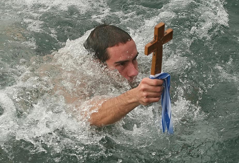 1月6日,在保加利亞卡洛菲爾市,人們在冰冷的河水中跳起保加利亞民間舞蹈霍洛舞,相互祝福在新的一年里身體健康,事事順?biāo)。圖片來源:中國新聞網(wǎng)