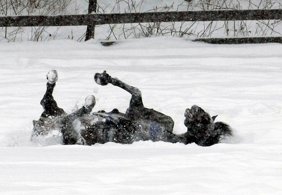 1月5日,美國(guó)俄亥俄州,一匹馬在雪地上“撒野”。