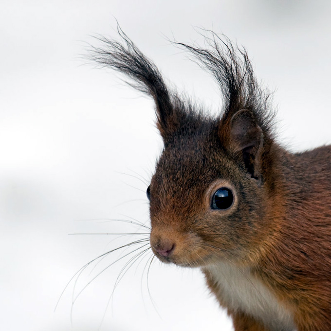 比利時(shí)的樹(shù)林里一只頭型超酷的紅松鼠在玩雪。