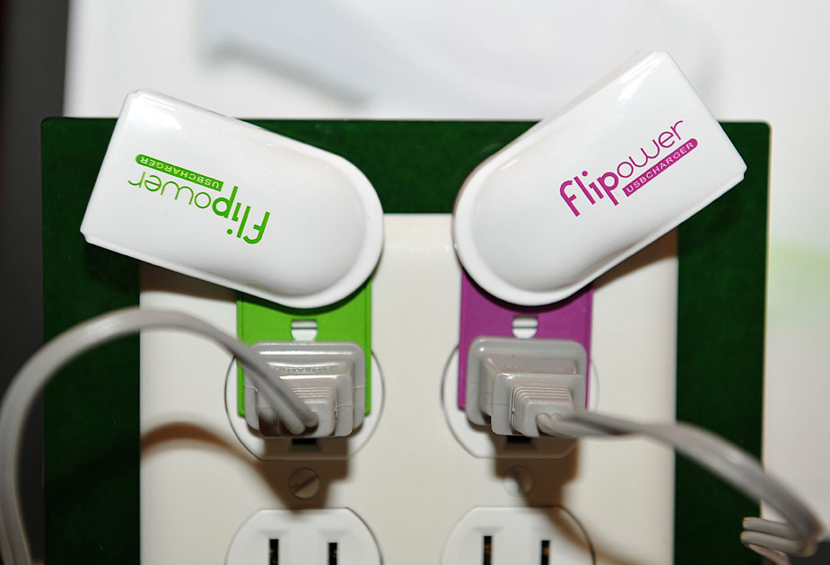 圖為國際消費電子展上展示新型USB充電器。