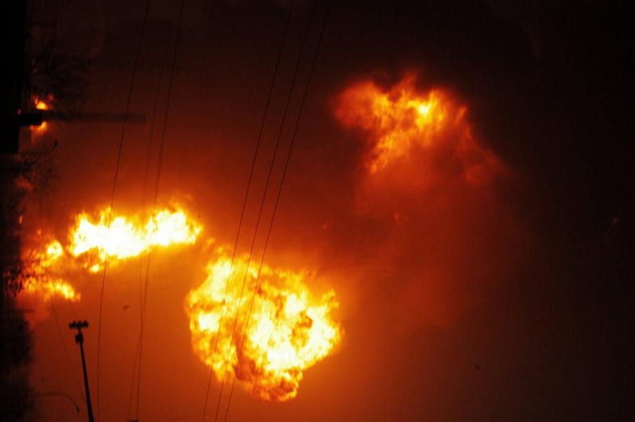 1月7日,蘭州石化公司石油化工廠316罐區(qū)爆炸著火。甘肅省政府當(dāng)日深夜在現(xiàn)場舉行新聞發(fā)布會說,事故造成1人重傷、5人輕傷、9人留院觀察、5人失蹤。 圖為爆炸現(xiàn)場。于永昭/CFP