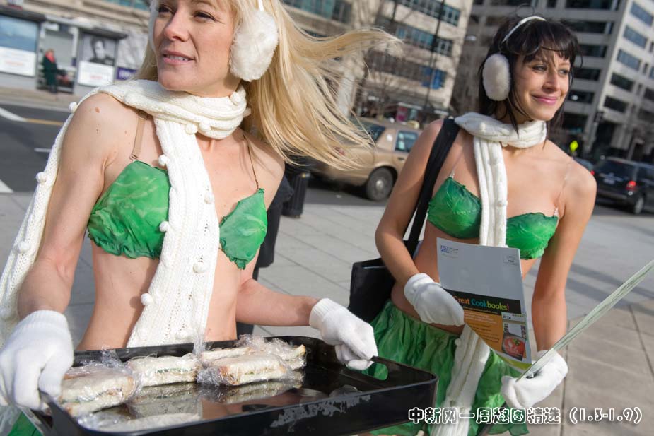 1月4日,善待動物組織(PETA)的成員在美國華盛頓法拉格特廣場上,冒著寒風(fēng)身著比基尼向過往群眾派發(fā)豆腐三明治,并以此宣傳素食的生活方式。圖片來源:中國新聞網(wǎng)>>點(diǎn)擊觀看詳細(xì)內(nèi)容