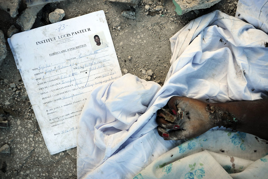 海地7級大地震后,街邊一排排無名尸體已開始腐爛,在巨大的廢墟下時(shí)不時(shí)的傳出被壓難民的呻吟聲,幾乎夷為平地的首都太子港淪為露天難民營。圖片來源:中國新聞網(wǎng)