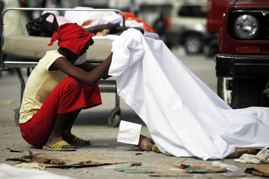 海地7級大地震后,街邊一排排無名尸體已開始腐爛,在巨大的廢墟下時不時的傳出被壓難民的呻吟聲,幾乎夷為平地的首都太子港淪為露天難民營。圖片來源:中國新聞網(wǎng)