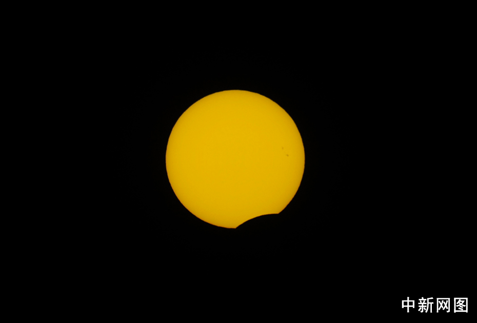 圖為北京時(shí)間15:38拍攝到的太陽。中新網(wǎng)記者 金碩 攝