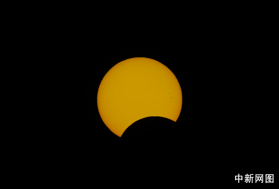 圖為北京時(shí)間15:57拍攝到的太陽。中新網(wǎng)記者 金碩 攝