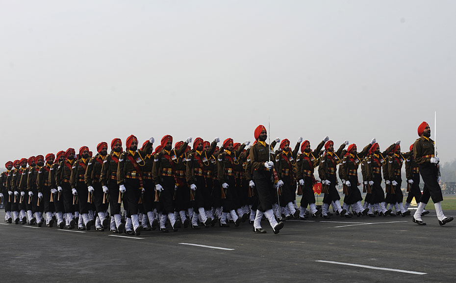 圖為印度陸軍在建軍節(jié)上進(jìn)行隊(duì)列表演。