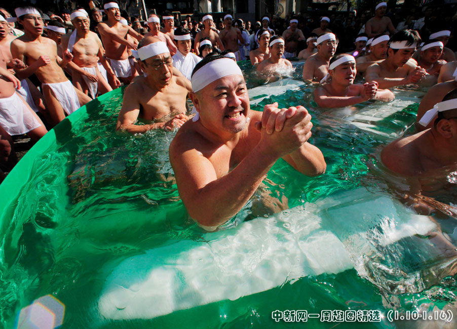 2010年1月10日,日本東京,眾多健身愛好者一同在冷水中浸泡,祈禱自己在新一年身體健康,并展示自己的體魄。圖片來(lái)源:中國(guó)新聞網(wǎng)>>點(diǎn)擊觀看詳細(xì)內(nèi)容