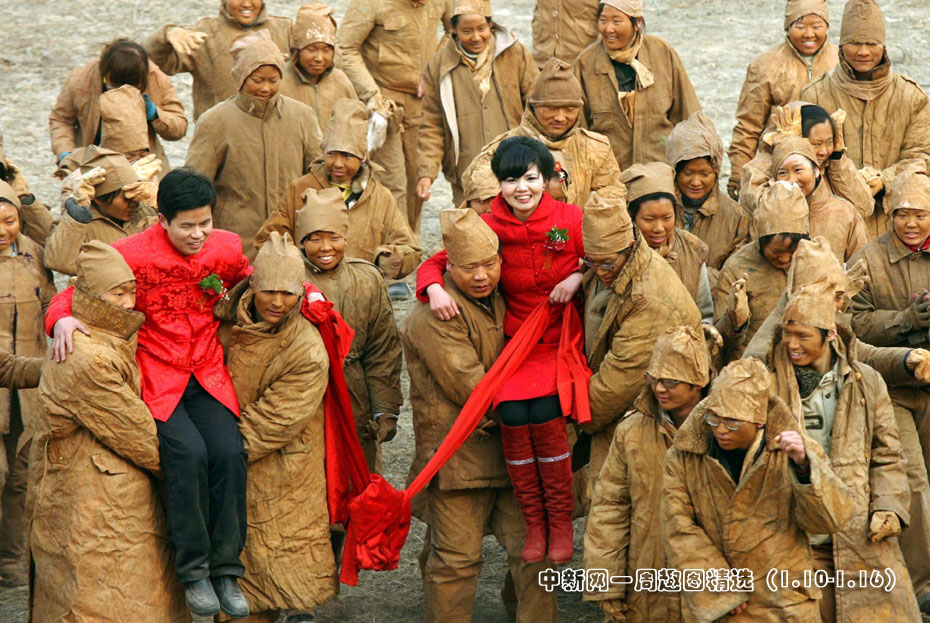 1月10日,四個"泥人”用手搭成原始花轎抬著一對新人在鄭州黃河岸邊別出心裁的舉行婚禮。新人面向孕育了中華民族五千年文明的黃河,一拜天地,二拜高堂,之后,夫妻鞠躬對拜。在世風奢華、婚禮鋪張的當下,一對新人在茫茫黃河邊,讓厚土為證,海誓山盟,喜結(jié)連理,以行為藝術(shù)形式表達人們保持本真、適應(yīng)環(huán)境的心聲。圖片來源:中國新聞網(wǎng)>>點擊觀看詳細內(nèi)容