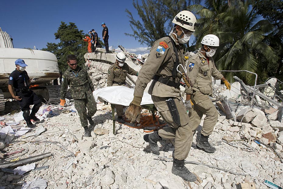 1月16日,海地首都太子港,中國國際救援隊在聯(lián)海團總部對遇難者進行搜尋工作。此前八名中方失蹤人員的遺體已全被找到。圖片來源:中國新聞網(wǎng)