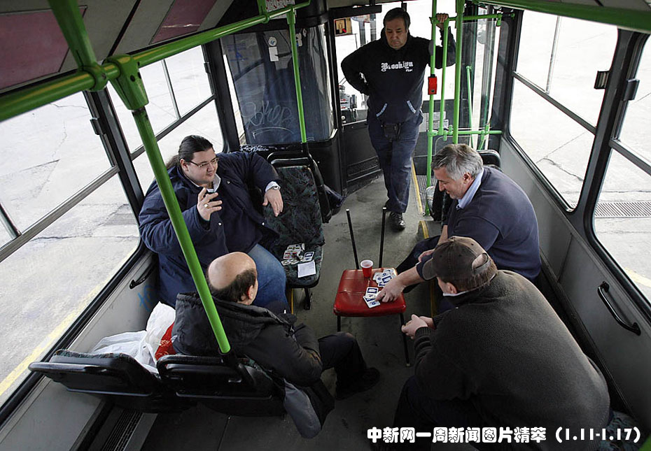 1月12日(周二),在布達(dá)佩斯一個(gè)汽車(chē)站,幾名司機(jī)在一輛城市公交車(chē)內(nèi)打牌。他們從周二開(kāi)始罷工,要求提高工資并簽訂新的勞動(dòng)合同。圖片來(lái)源:中國(guó)新聞網(wǎng)