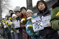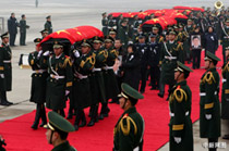 1月19日,北京民眾自發(fā)守候在通往北京八寶山殯儀館的路口迎接英烈的靈柩。當(dāng)日,八位海地地震遇難中國(guó)維和警察的靈柩搭乘專機(jī)將抵達(dá)北京。中新網(wǎng)記者 金碩 攝