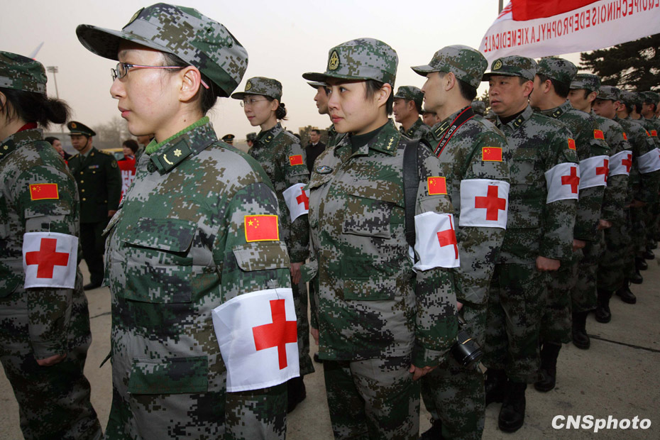 中國人民解放軍醫(yī)護(hù)人員和管理人員組成的中國醫(yī)療防疫救護(hù)隊(duì)一行40人乘坐軍運(yùn)包機(jī)離開北京,啟程前往海地進(jìn)行人道主義救援任務(wù)。中新社發(fā) 劉震 攝