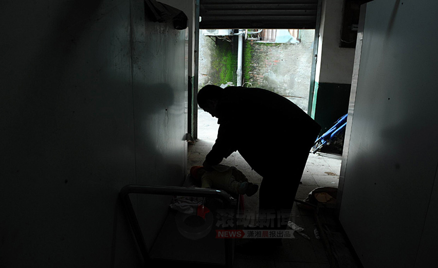 1月19日,省兒童醫(yī)院太平間,高雄飛給小振和穿上剛買的新衣服,送兒子最后一程!皟鹤樱“职纸o 你穿衣服來了,乖乖的啊!”高雄飛鼻子不停地抽搐,雙手卻輕輕地給 兒子穿上新買的黃色小衣裳。瀟湘晨報 記者 楊抒懷 攝