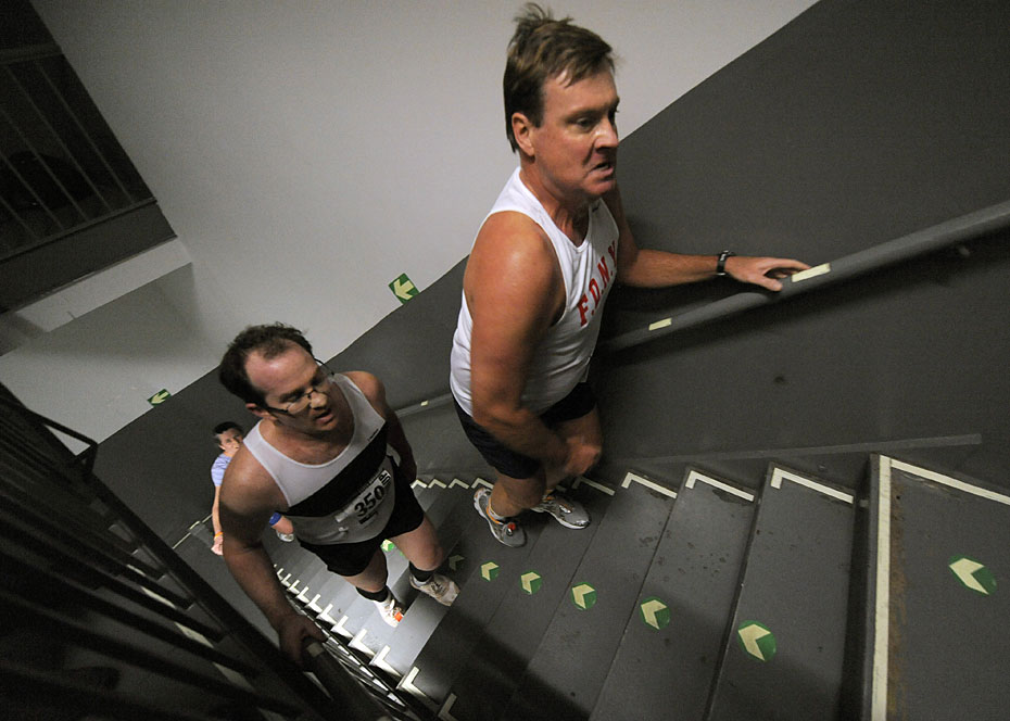 2月2日,一年一度的爬樓梯大賽在美國紐約帝國大廈舉行。數(shù)百名選手參加了第33屆帝國大廈爬樓梯大賽。帝國大廈有86層、1576級臺階。圖片來源:中國新聞網(wǎng)