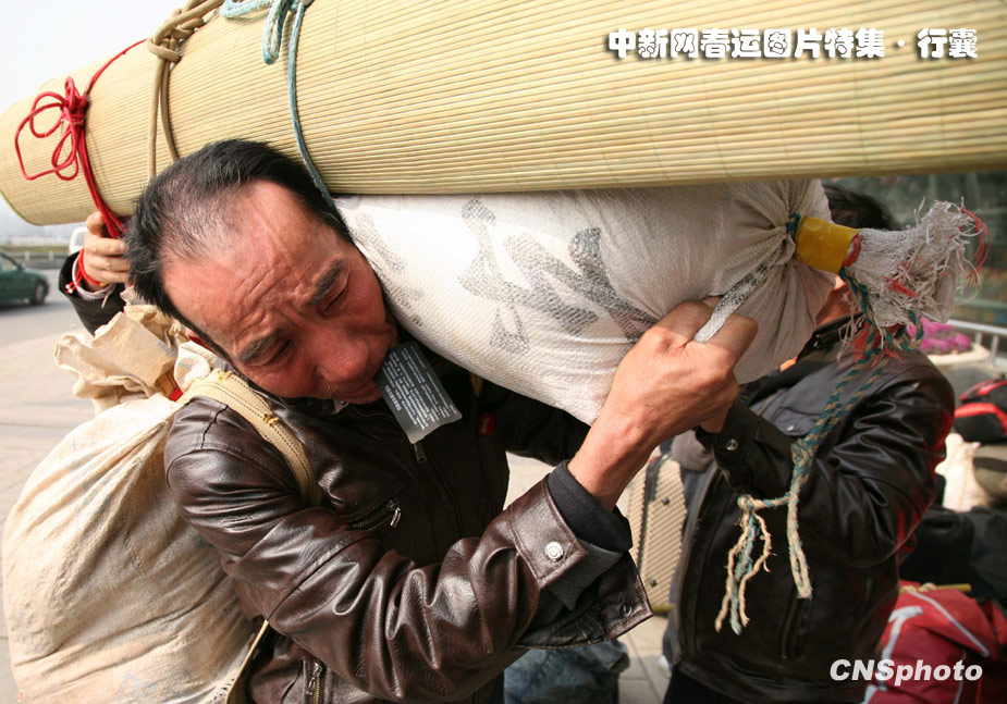 春節(jié)臨近,出門在外的人拎著大包小包地回家過年。這行囊或重或輕,可能是帶給父母的孝敬,也可能是帶給愛人的心動,但每個(gè)行囊中一定都會裝著人們一年來收獲的喜悅之情。中新社發(fā) 鐘山 攝