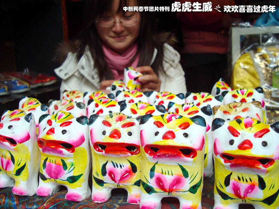 1月15日,虎年臨近,蘇州山塘街民間藝人制作的傳統(tǒng)玩具“皮老虎”引起了許多市民和游人的濃厚興趣。“皮老虎”是蘇州民間傳統(tǒng)玩具,用膠泥燒制虎頭與虎尾,中間用軟羊皮將虎身粘合,在虎口中置一哨,用手輕輕一拉一合,便可發(fā)出悅耳動(dòng)聽的皮虎歌唱。中新社發(fā) 王建康 攝