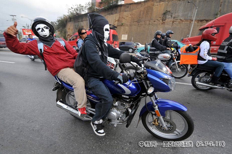 當?shù)貢r間2月6日,在危地馬拉首都危地馬拉城,大約30000名摩托車手駕駛著機車在街頭游行。圖片來源:中國新聞網(wǎng)>>點擊觀看詳細內容