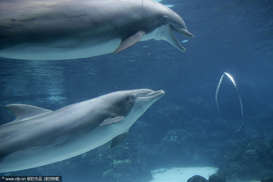 近日,美國奧蘭多海洋世界的一只寬吻海豚吹出“心形”氣泡,似乎要在情人節(jié)來臨前夕傳達(dá)濃濃愛意。圖片來源:CFP