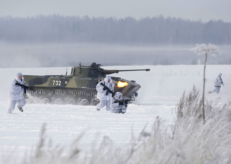 2月18日,俄羅斯第98空降師在莫斯科以東320公里的伊萬諾沃市附近舉行雪地空降演習(xí)。圖片來源:中國新聞網(wǎng)