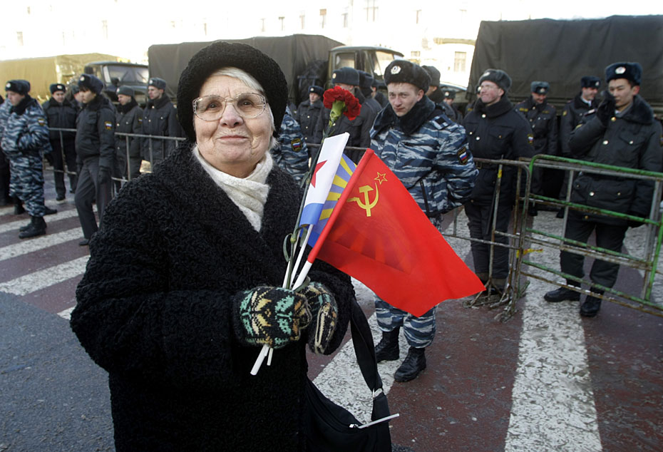 2月23日,俄羅斯莫斯科,示威者參加俄羅斯共產黨組織的集會,抗議軍隊改革。圖片來源:中國新聞網