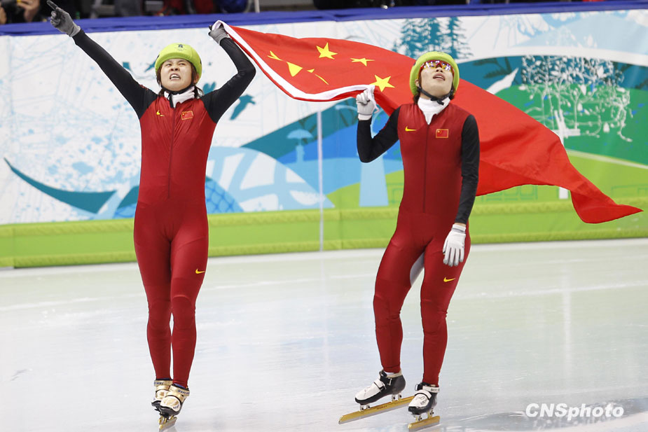 北京時(shí)間27日中午,中國(guó)選手王濛在2010年溫哥華冬奧會(huì)短道速滑女子1000米的決賽中摘得金牌。圖片來(lái)源:中國(guó)新聞網(wǎng)
