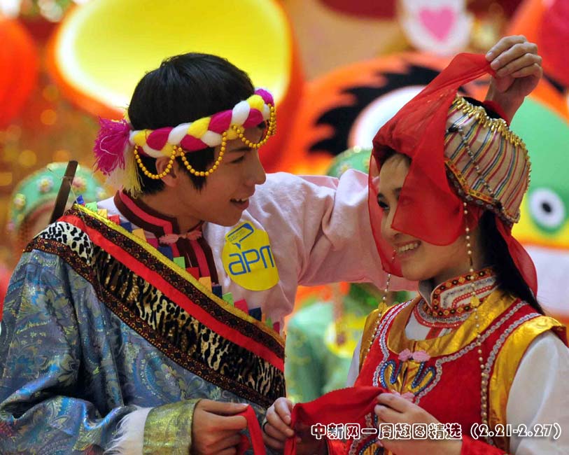 為迎接元宵節(jié),香港創(chuàng)紀之城將舉行三大特色少數(shù)民族婚禮,包括最多人口的壯族、好客的苗族和能歌善舞的蒙古族。25日,商場預演蒙古族新郎迎接新娘片段。圖片來源:中國新聞網(wǎng)>>點擊觀看詳細內(nèi)容