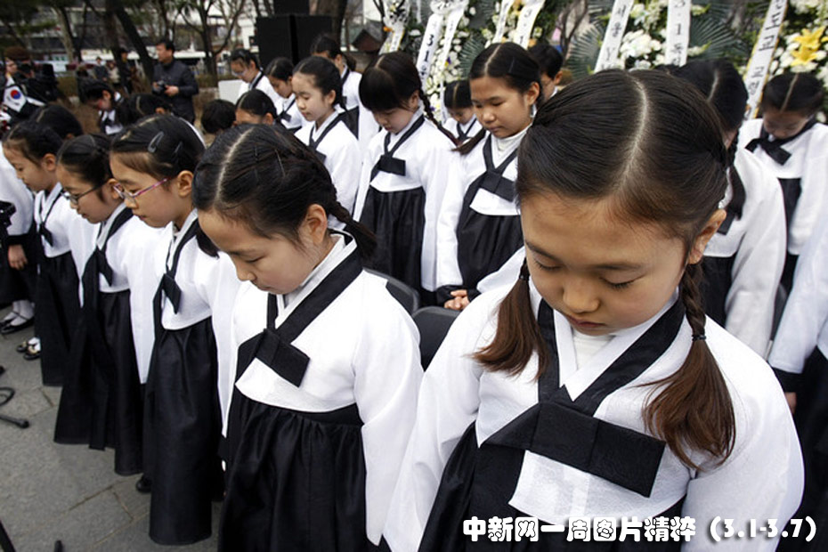 近日,韓國首爾的小學生身穿傳統(tǒng)服飾在三一運動紀念活動上默禱。三一運動紀念日是為了紀念1919年3月1日發(fā)生的反抗日本殖民統(tǒng)治的起義而設。圖片來源:中國新聞網