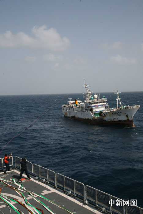 大陸海軍護航艦艇接護臺灣漁船