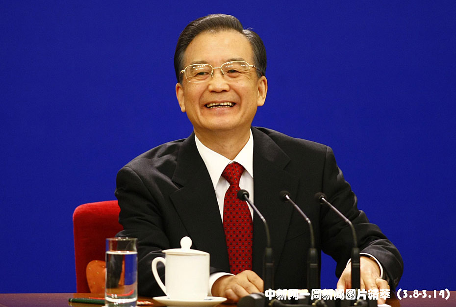周日上午,國(guó)務(wù)院總理溫家寶在人民大會(huì)堂三樓金色大廳與采訪十一屆全國(guó)人大三次會(huì)議的中外記者見面并回答記者提出的問題。圖片來源:中國(guó)新聞網(wǎng)