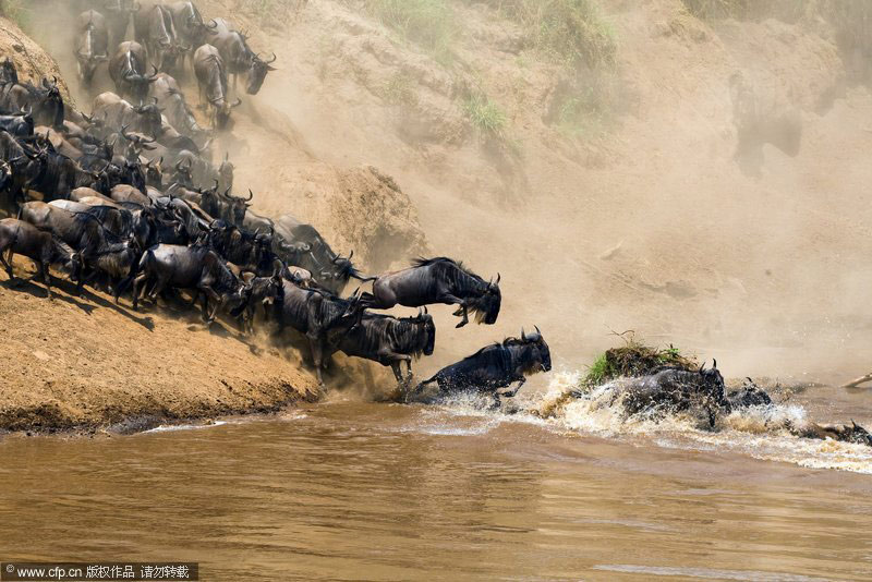 3月17日消息,捷克野生動物攝影師瓦拉夫·希爾哈(Vaclav Silha)在肯尼亞馬賽瑪拉(Masai Mara)國家保護(hù)區(qū)拍到了罕見的牛羚大遷移場面。上百萬牛羚集體穿越馬拉河,同時(shí)為了防止被水中的鱷魚咬到及逃避岸邊叢林里的老虎,牛羚群制造出巨大的聲響并急沖到對岸。barcroftmedia/CFP