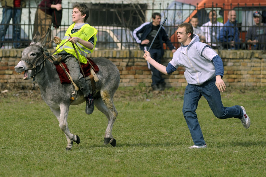 3月20日,在塞爾維亞首都貝爾格萊德西北30公里的一個(gè)村莊舉行了傳統(tǒng)的賽驢大賽。圖片來源:中國新聞網(wǎng)