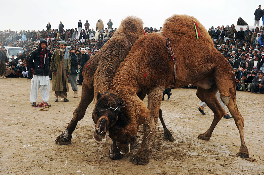 3月22日,阿富汗舉行傳統(tǒng)的都駱駝大賽慶祝阿富汗新年。斗駱駝在阿富汗是一項頗受民眾喜歡的運動。