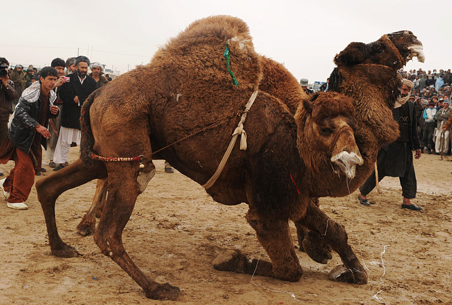3月22日,阿富汗舉行傳統(tǒng)的都駱駝大賽慶祝阿富汗新年。斗駱駝在阿富汗是一項頗受民眾喜歡的運(yùn)動。