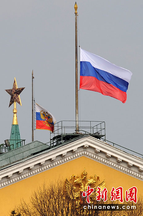 俄羅斯把3月30日定為全國哀悼日,悼念地鐵爆炸案中的遇難者。所有國家行政機(jī)構(gòu)都降半旗致哀。圖片來源:中國新聞網(wǎng)